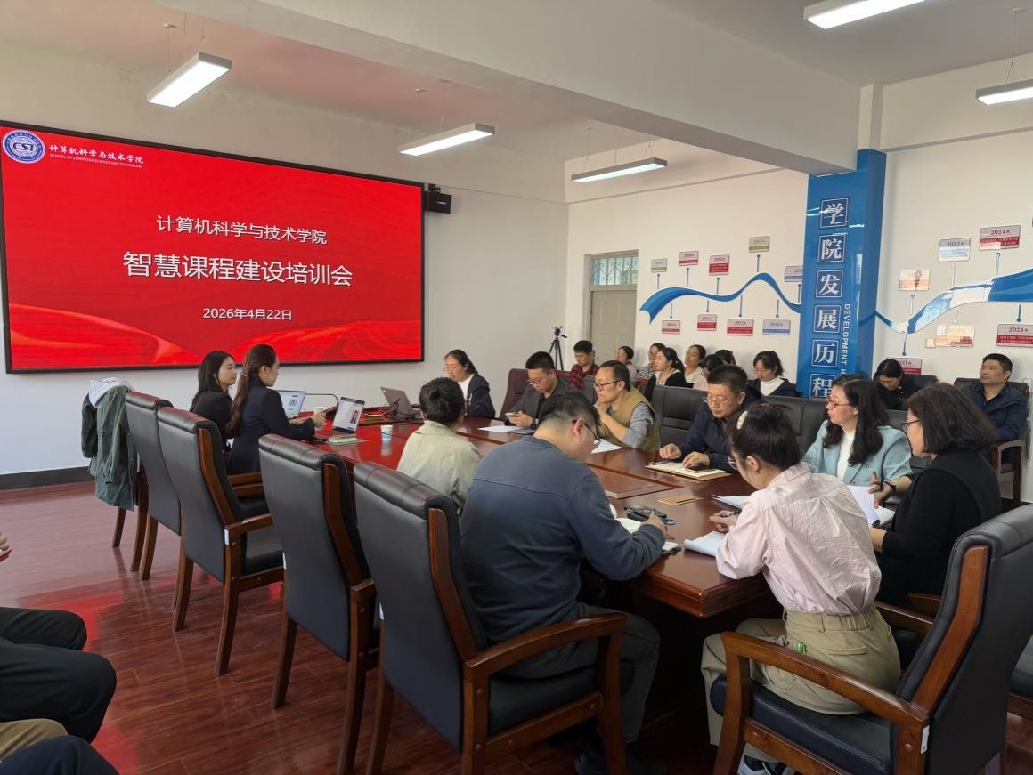 2026年4月22日下午,计算机科学与技术学院在409会议室举办智慧课程建设专题培训会,各系部主任、青年教师及智慧课程建设相关负责人参会。