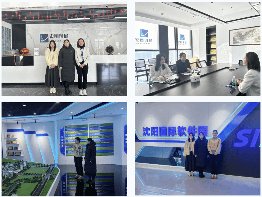 与此同时,学院党总支副书记吴洋与就业总指导员刘天宇组成走访小组,赴辽宁宏图大数据科技有限公司、沈阳数字经济产业园发展有限公司开展实地调研。走访团队深入企业办公现场,详细了解企业数字化转型进程与人才需求缺口,双方就毕业生实习就业、产学研协同创新等事宜达成共识,企业承诺为学院毕业生开放优质岗位,涵盖数据标注师、项目运营等多个方向。