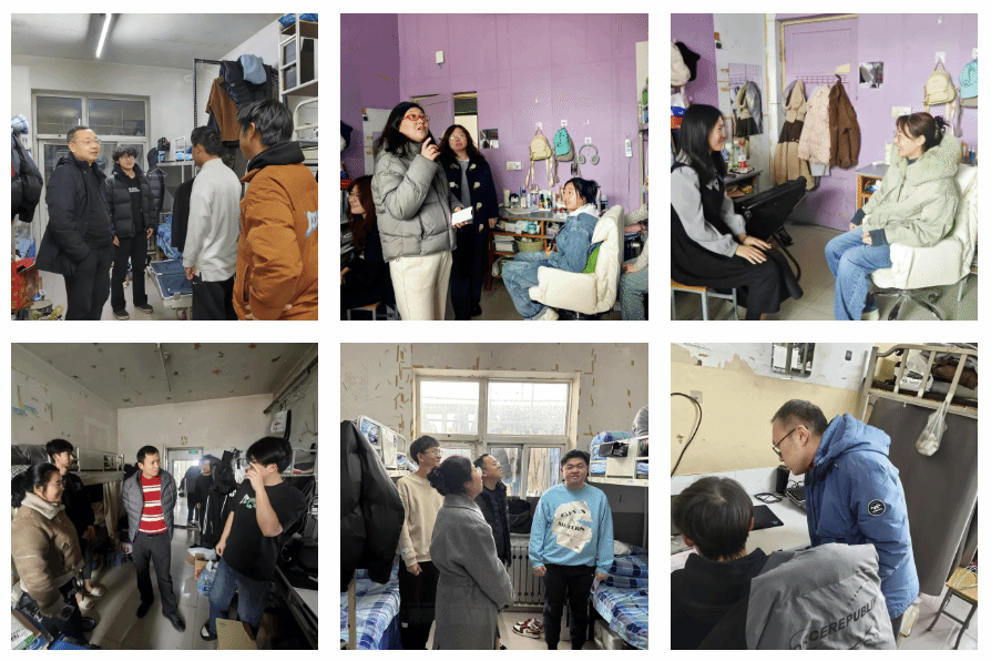 走访中,辅导员与班导师详细询问同学们的日常起居与学业状态,重点收集生活与学习方面的诉求。围绕寝室环境以及作息协调、卫生值日等日常管理问题,老师们耐心倾听意见建议;针对室友相处、集体氛围建设等话题,深入了解同学们的情绪动态与身心压力,为后续精准帮扶找准方向、明确着力点。